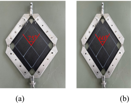 图二:非正交预浸料(a)75°预浸料和(b)60°预浸料