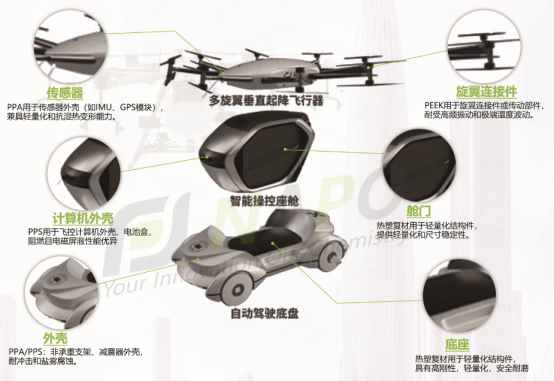 高温功能组件:PEEK基复合材料制造的电机壳体和电池支架,耐受200℃以上高温,解决电动飞行器的热管理难题。小鹏汇天“旅航者X2”的桨叶采用碳纤维铺层结构,碰撞后仅表面划伤,不影响飞行安全