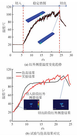 仿真模型预测的温度与实际测量结果误差不超过12.37%,在切入、稳定磨削、切出三个阶段中,温度变化趋势高度一致,说明模型具有较好的工程适用性。
